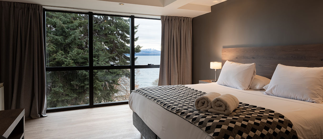 Este Hotel categoría 3 estrellas posee una ubicación privilegiada en el centro de la Cuidad de San Carlos de Bariloche, con una excelente vista panorámica al Lago Nahuel Huapi y a las majestuosas montañas que rodean el mismo. A sólo metros del Hotel se ubican la Iglesia Catedral Nuestra Señora del Nahuel Huapi y los centros comerciales de la calle principal Mitre.